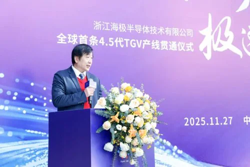 2025年11月27日,浙江海极半导体技术有限公司在杭州富阳举行全球首条G4.5代全工艺TGV产线贯通仪式。光界咨询作为本次活动承办单位,受邀参与本次贯通仪式。