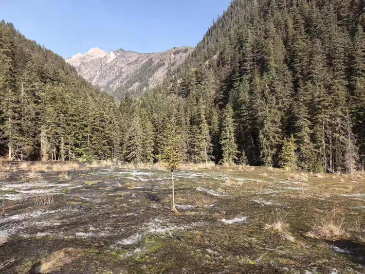 紅桦與白桦交尾成仙 靜深倒躺的千年松承歡 藍天白雲和蒼莽群峰熱擁 遊旅者心波飛飏成歎