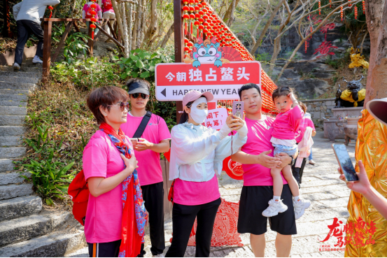 祭礼之后,“登鳌山,占鳌头”登山打卡活动如约开启。参与者沿南海神鳌登山路线拾级而上,打卡文化点位、收集限定印章,登顶收获定制纪念品,在运动中感受“独占鳌头”的美好寓意。与此同时,“剃龙头、沾龙水”习俗体验区、龙族NPC互动问答、龙文化趣味游戏等年轻化环节同步上演,让市民游客从“观礼者”转变为“剧情参与者”,在欢声笑语中触摸文化根脉。