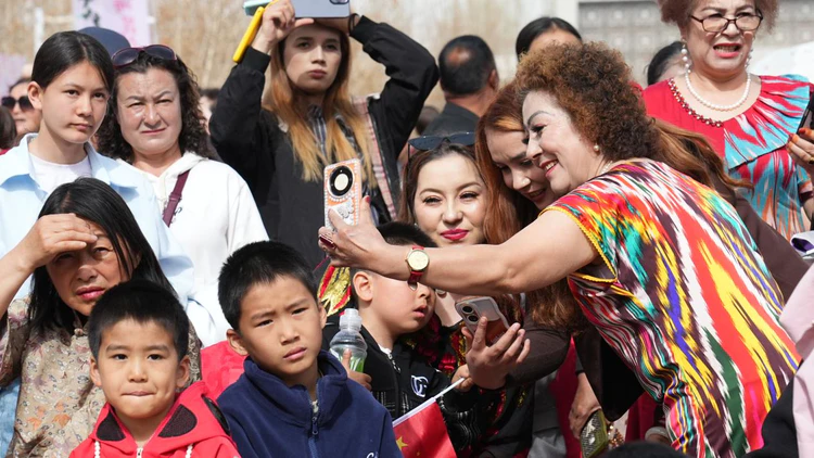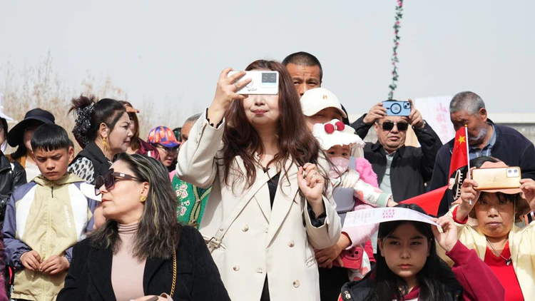 “太美了!杏花好看,表演更精彩,这趟来值了!”现场游客纷纷拿出手机记录精彩瞬间,兴奋地分享着观赏体验。来自外地的游客王女士表示,达瓦孜表演惊险震撼,民族歌舞热情洋溢,在花海中感受喀什的文化与风情,是一次难忘的春日之旅。