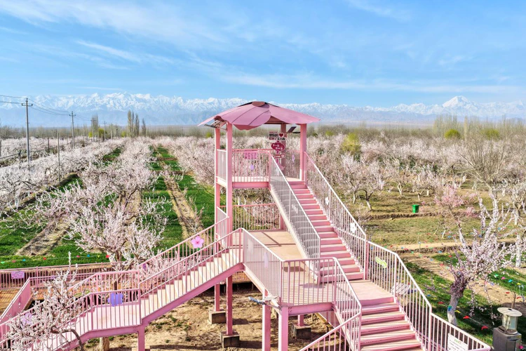 在喀什全地区范围内,杏花、桃花、巴旦木花次第绽放,各县市同步推出“一县一品”特色赏花活动:莎车县巴旦木花节融合歌舞展演与农文旅推介,塔什库尔干塔吉克自治县打造杏花与雪山相融的绝美民俗打卡地,喀什市、泽普县等地推出桃花季、苹果花节等主题活动,全域花海竞相绽放,形成了“处处有花、月月有景、四季可游”的赏花旅游新格局。